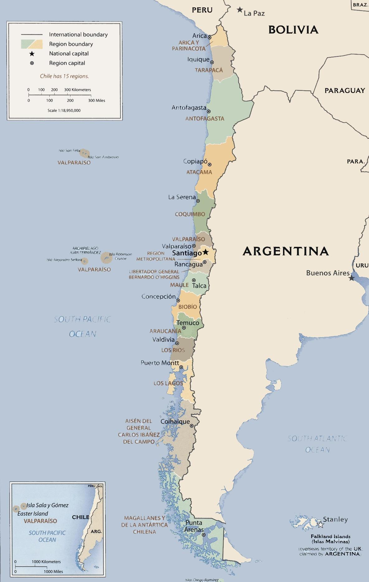 Map of political Chile. Political map of Chile (South America - Americas) to print. Political map of Chile (South America - Americas) to download.